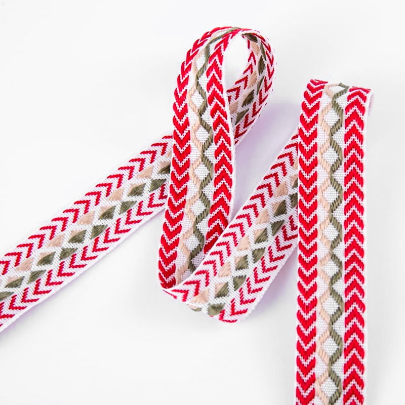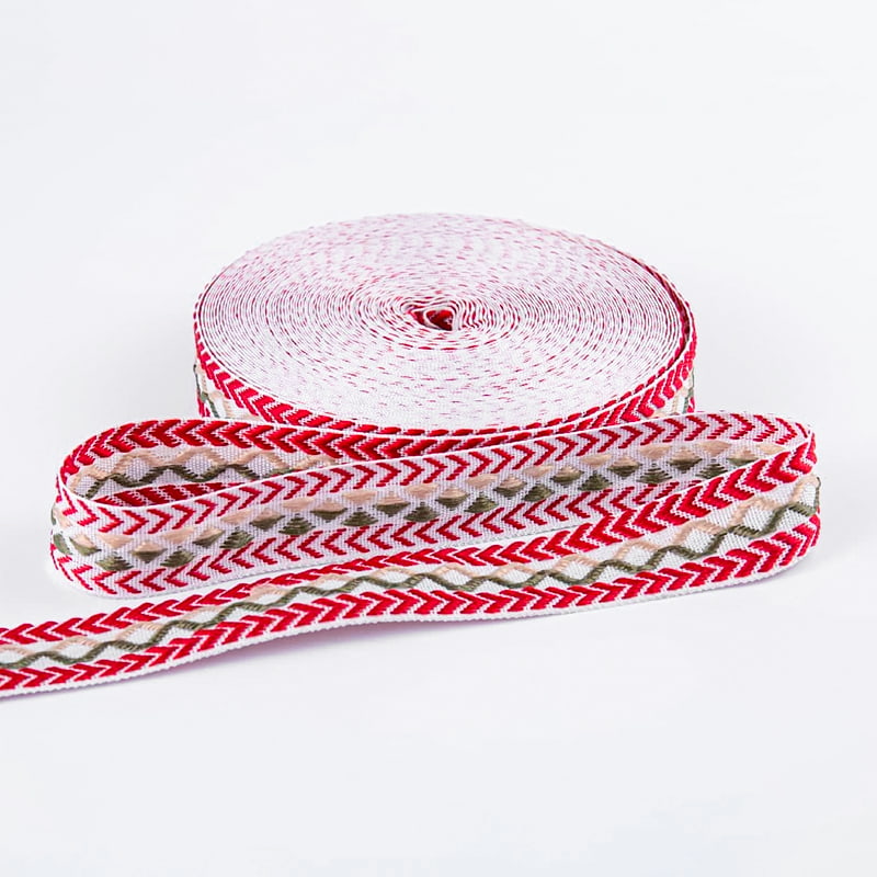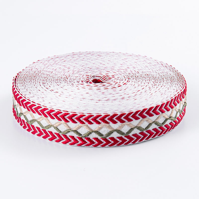 Den dobbeltsidige jacquardbåndet skaper utsøkte mønstre på begge sider, skaper en detaljert, tredimensjonal effekt og viser eksepsjonelt håndverk. Importert nylongarn og miljøvennlige fargestoffer, kombinert med avanserte datastyrte jacquardvevstoler og farge- og etterbehandlingsprosesser, sikrer en rik farge, delikat berøring og utmerket motstand mot deformasjon.